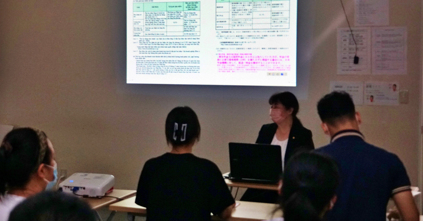 入国時のリテラシーチェックに応じたレベルアップを図ります。 会話をはじめ日本の社会生活、社会人マナー、仕事での心構え、コミュニケーションに対する理解を高めることで、少しでも早く仕事・技能を習得する環境に慣れ、充実した生活がおくれることを願い運営しています。